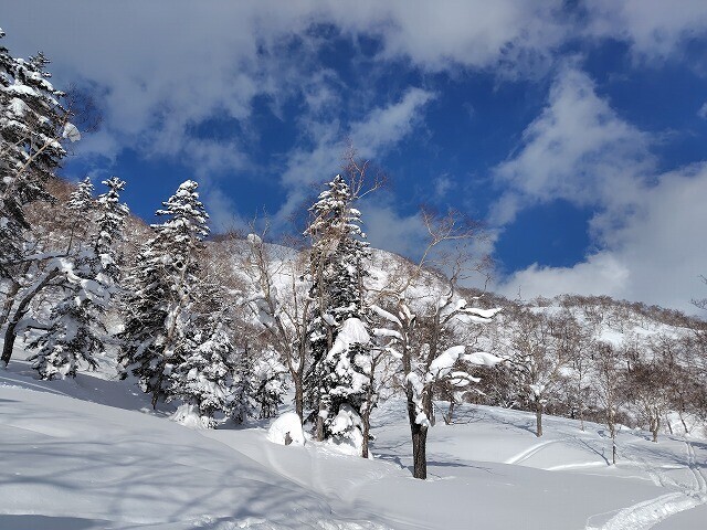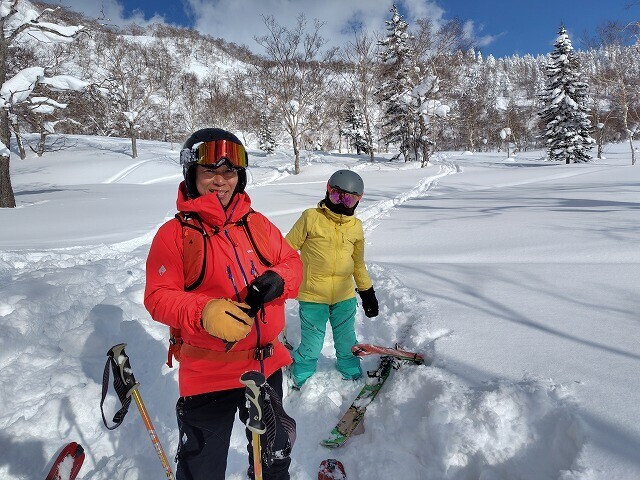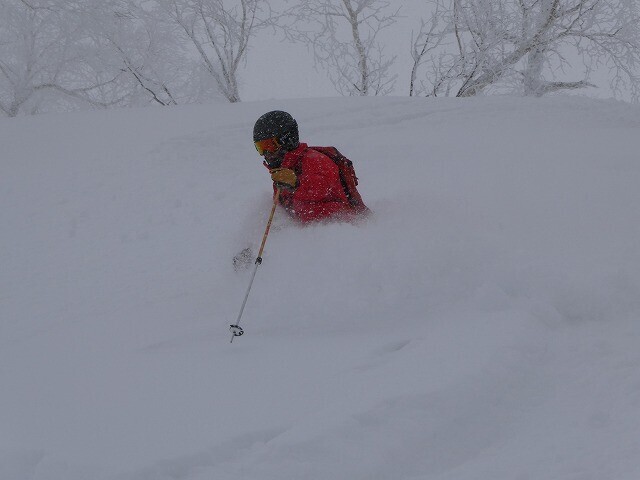 2日目も少し降り、下地のシュプールはすっかり消えて快適に滑れた。